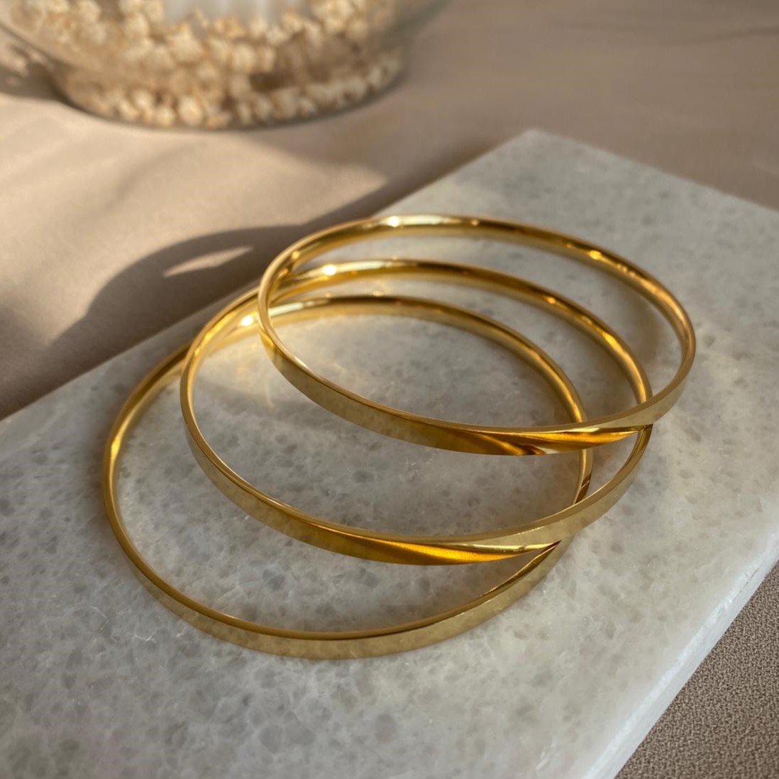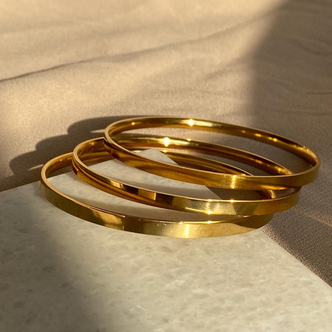 Çelik Gold 3`lü Kalın Ajda Bilezik 65 mm