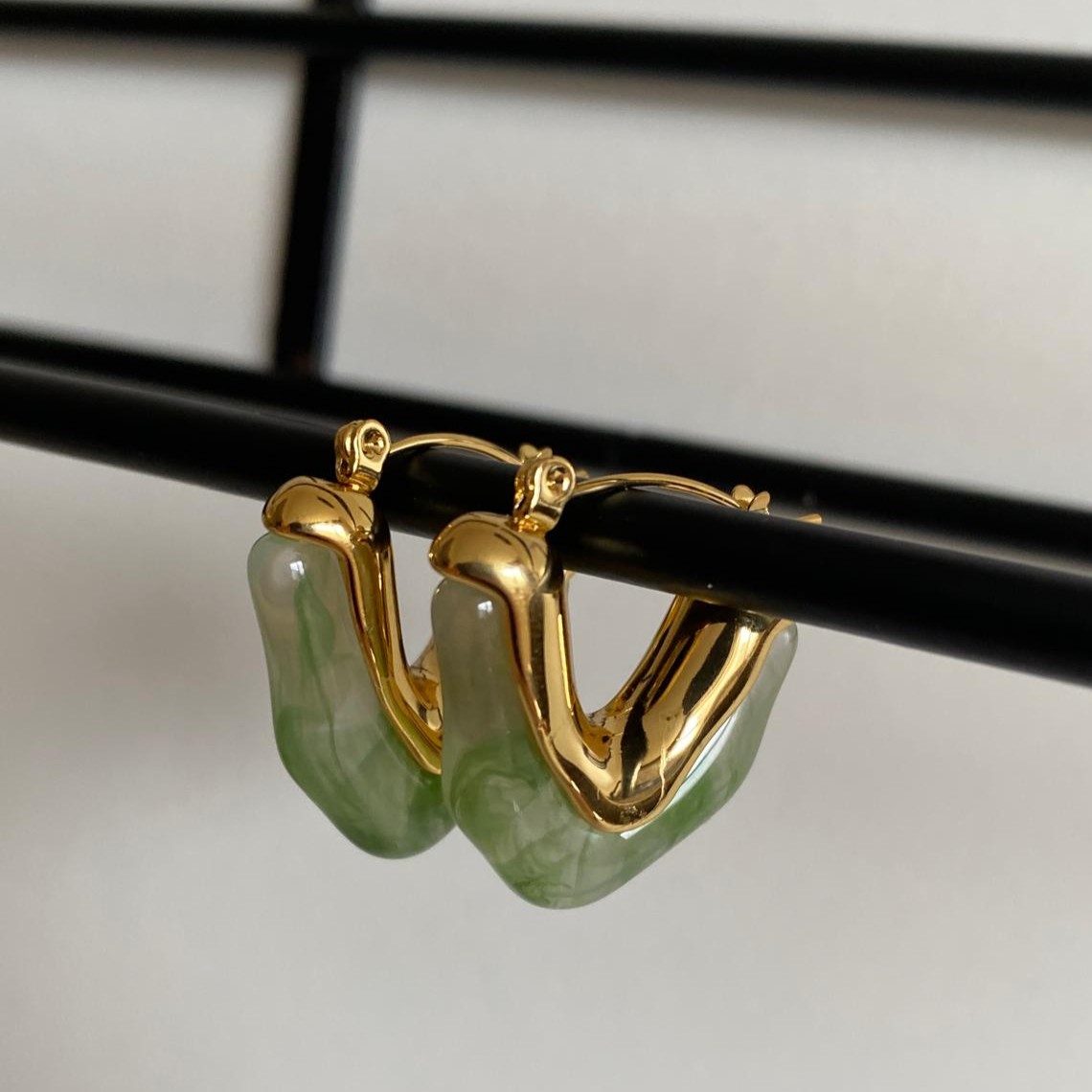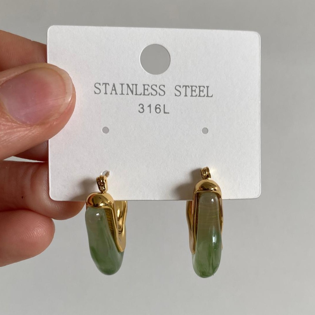 Çelik Gold Rengi Doğal Taşlı Küpe