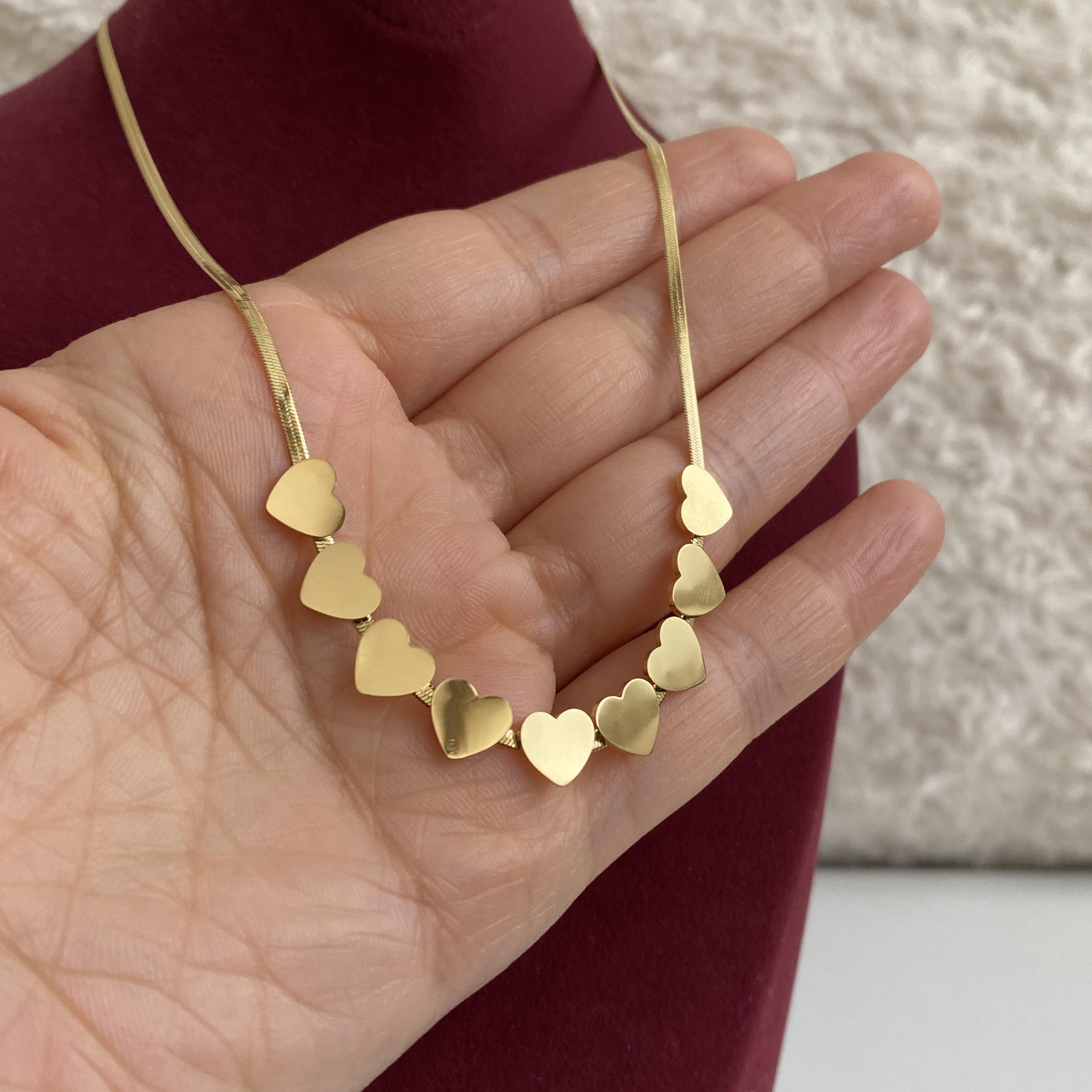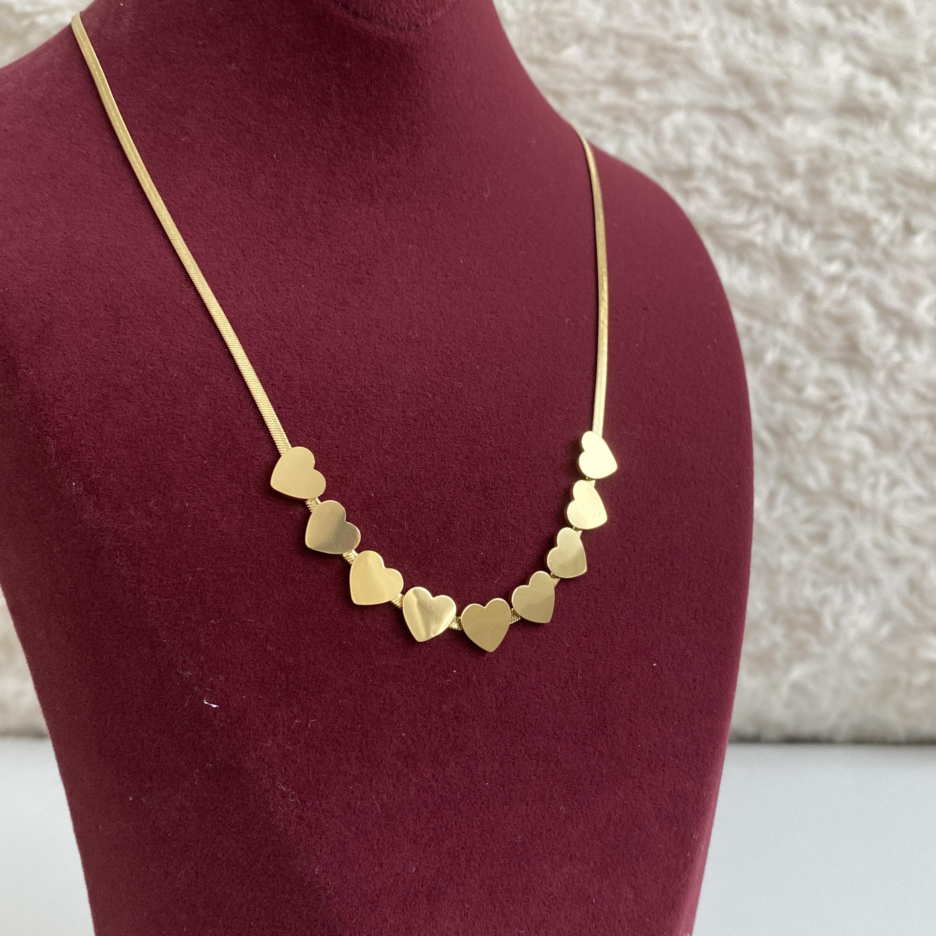 Çelik Gold Rengi Sıralı Kalp Kolye