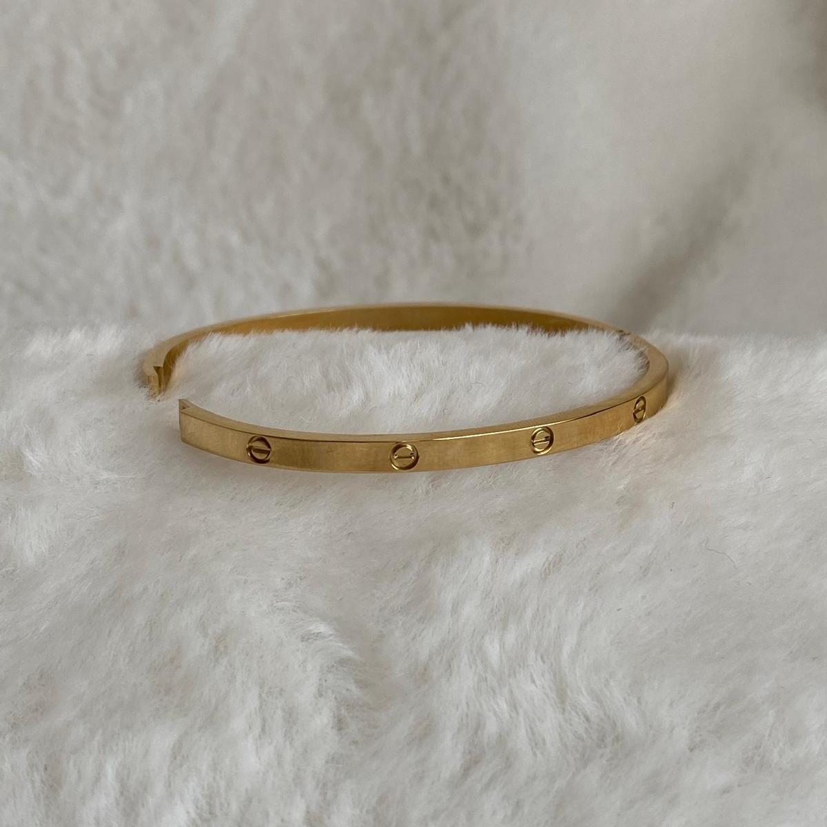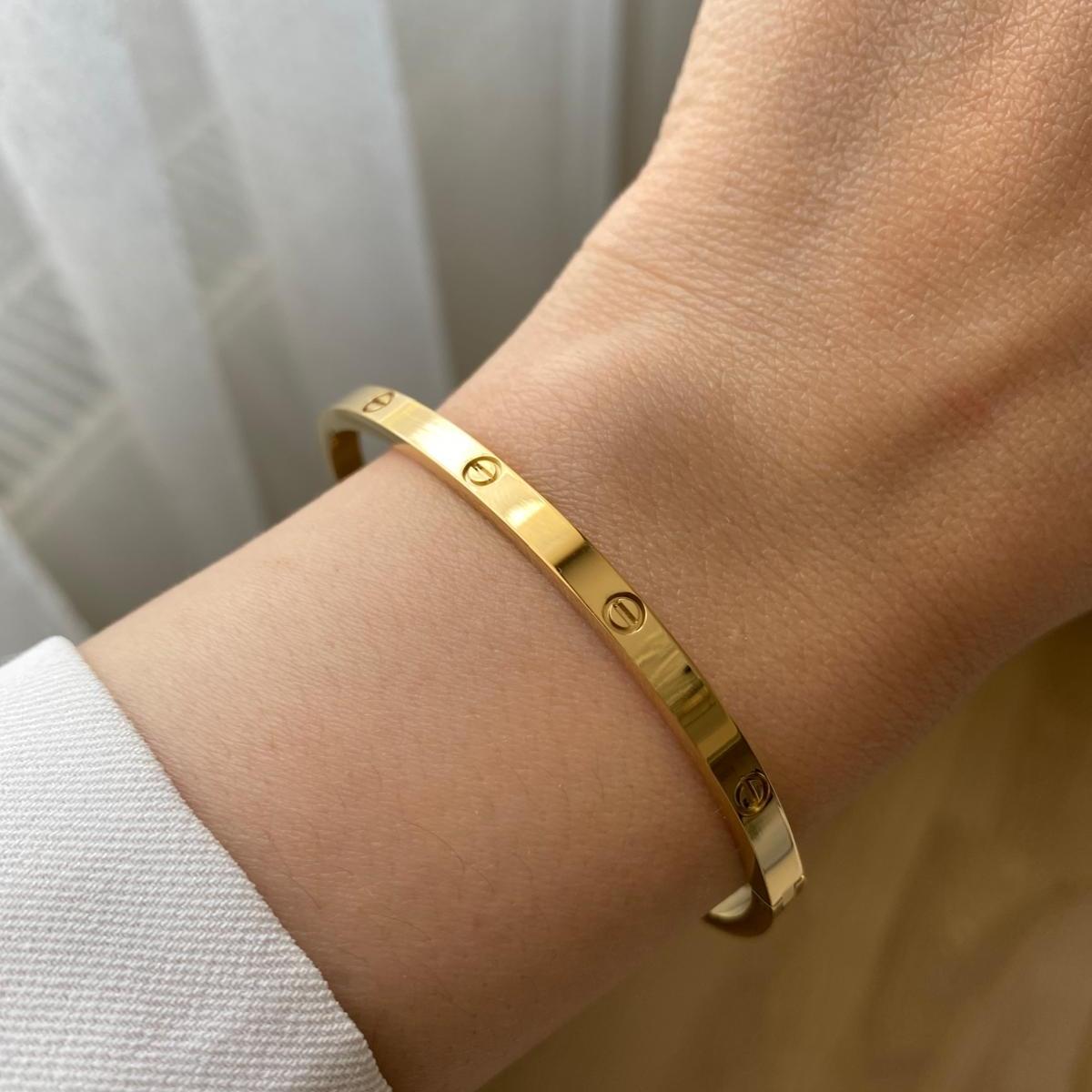 Çelik Gold Rengi Taşsız İnce Cartier Kelepçe 60 mm