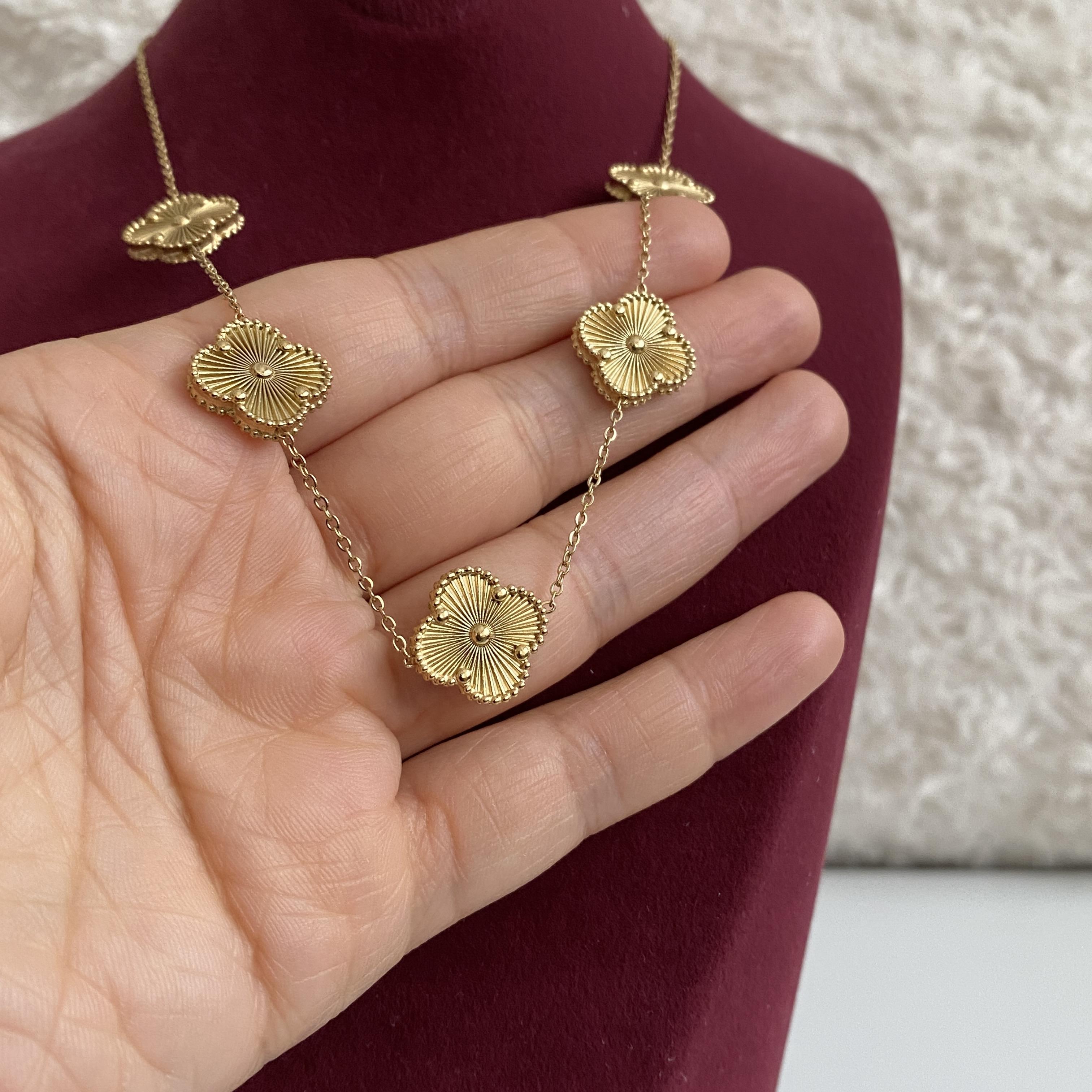 Çelik Gold Rengi Yonca Kolye