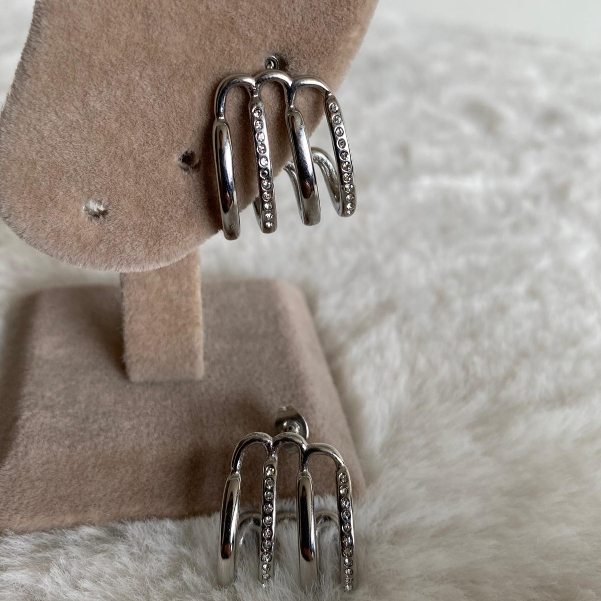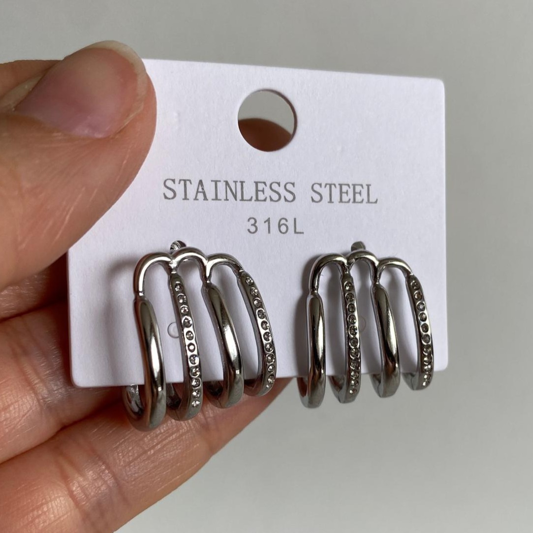 Çelik Silver Rengi Minimal Taşlı Çoklu Küpe