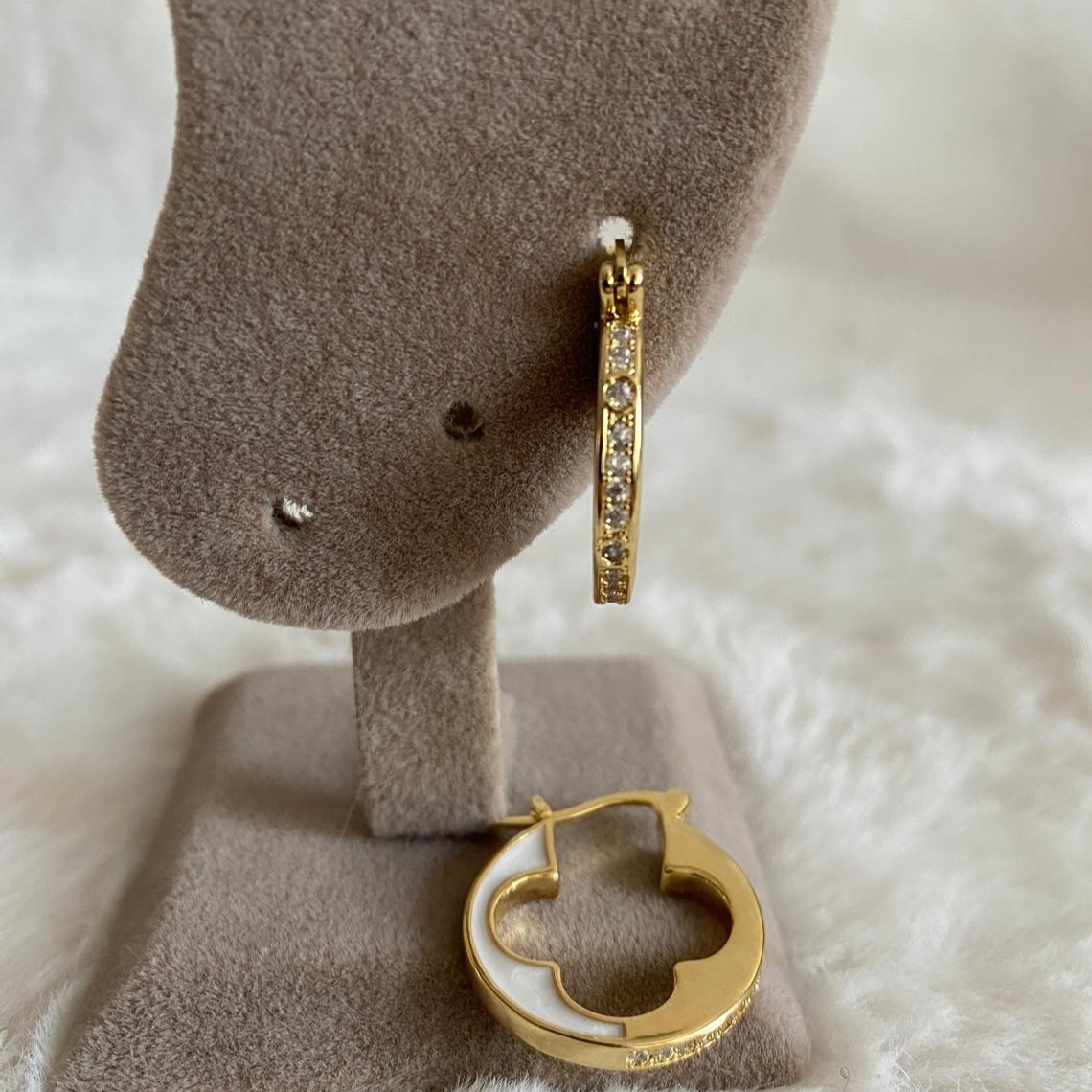 FJ Yuvarlak Plakalı Beyaz Detaylı Yonca Küpe