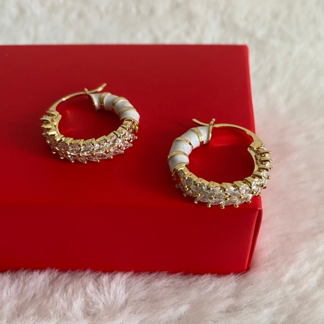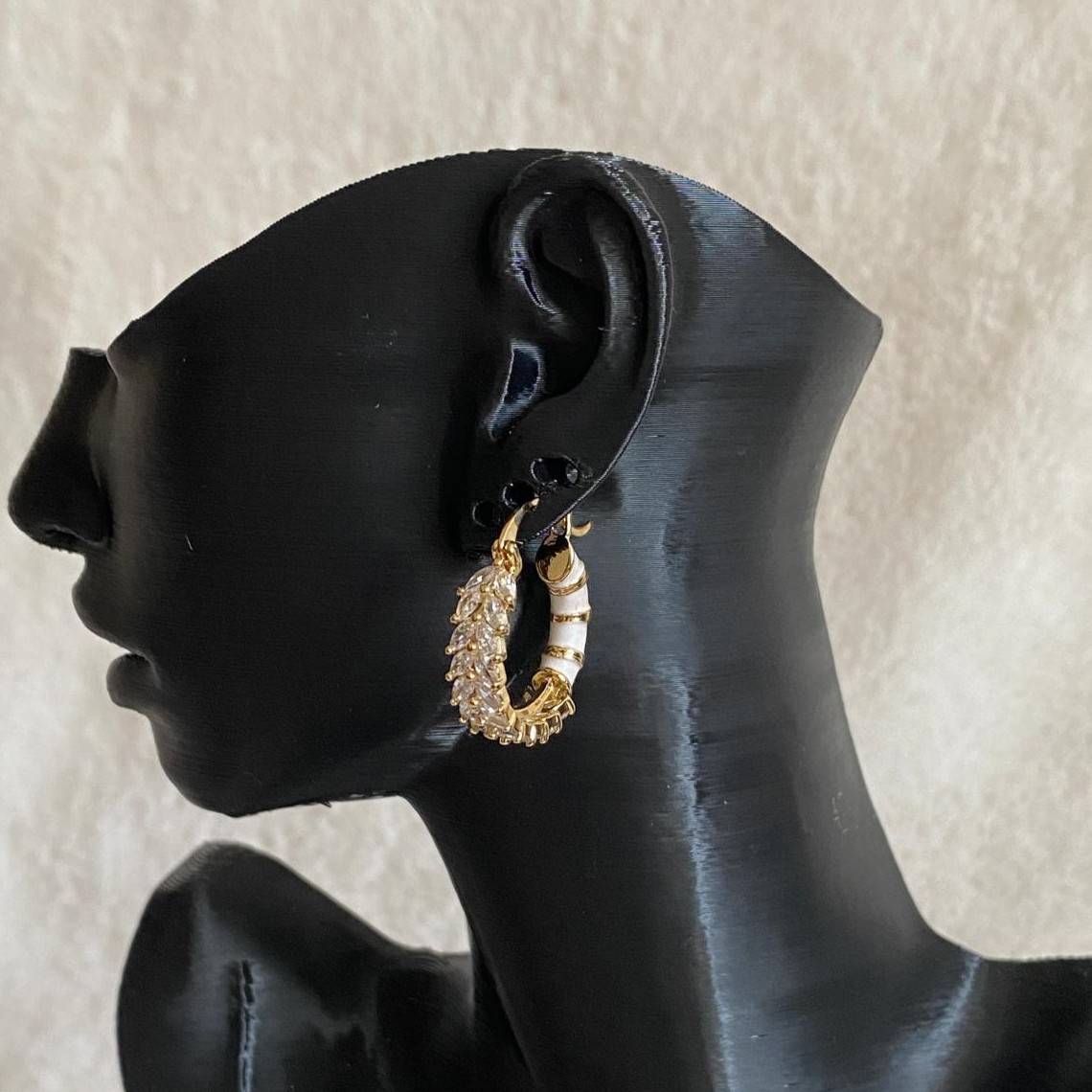 FJ Zirkon Taşlı Beyaz Kesme Taş Detaylı Küpe