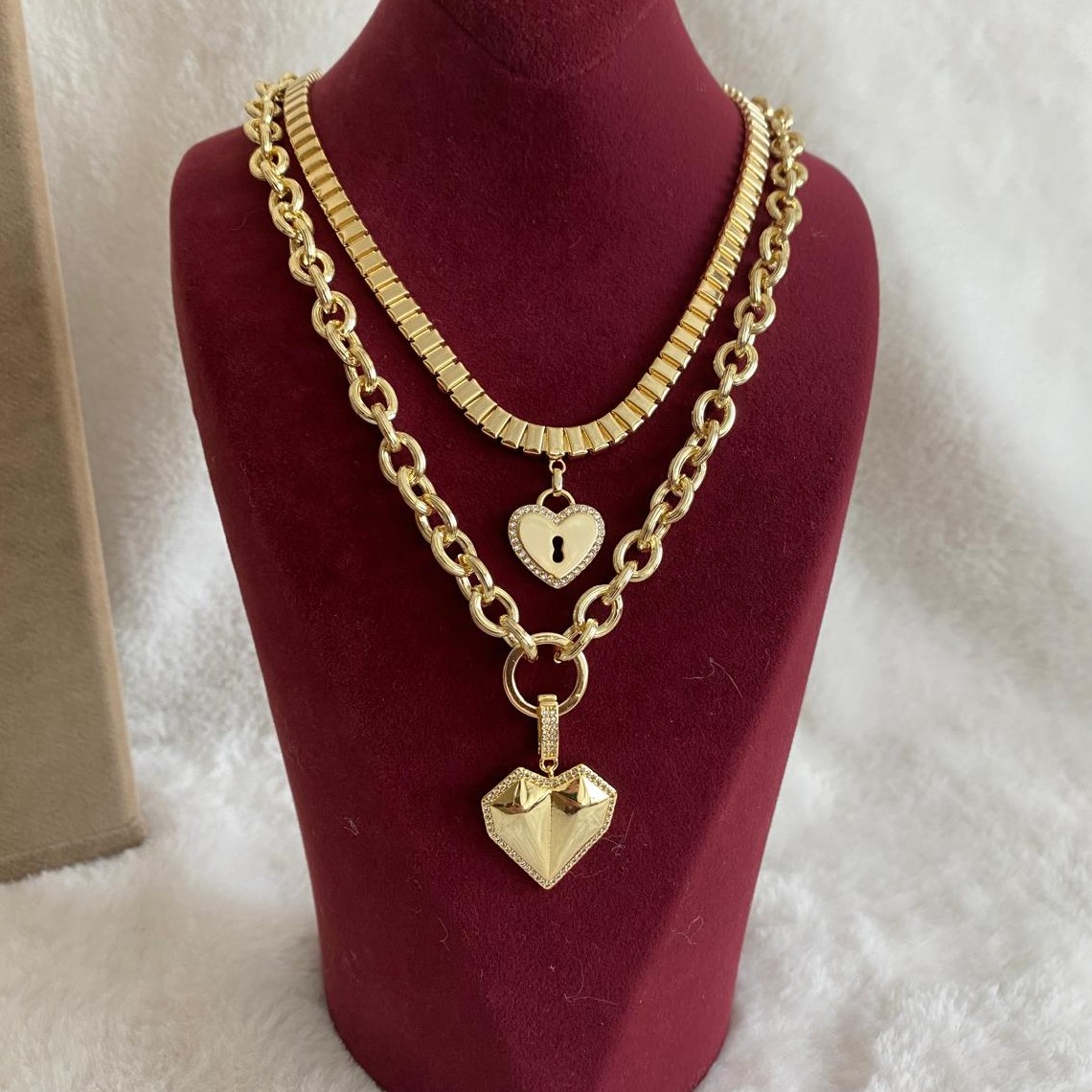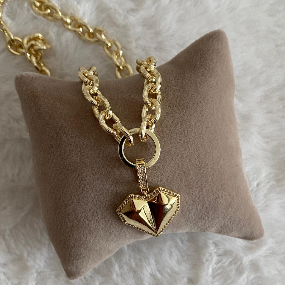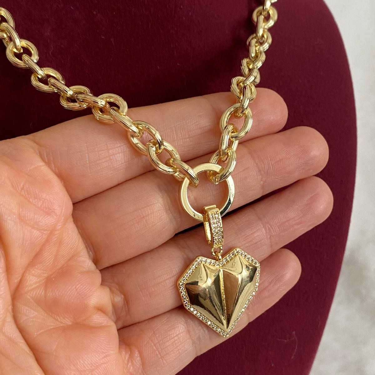Fully X Gold Rengi Bombeli Kalp Uçlu Kolye