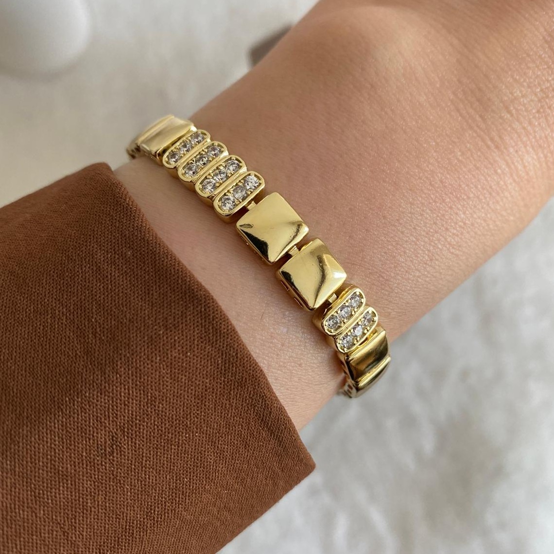 Xuping Gold Rengi DÖrt Sıra Taşlı Kare Bileklik