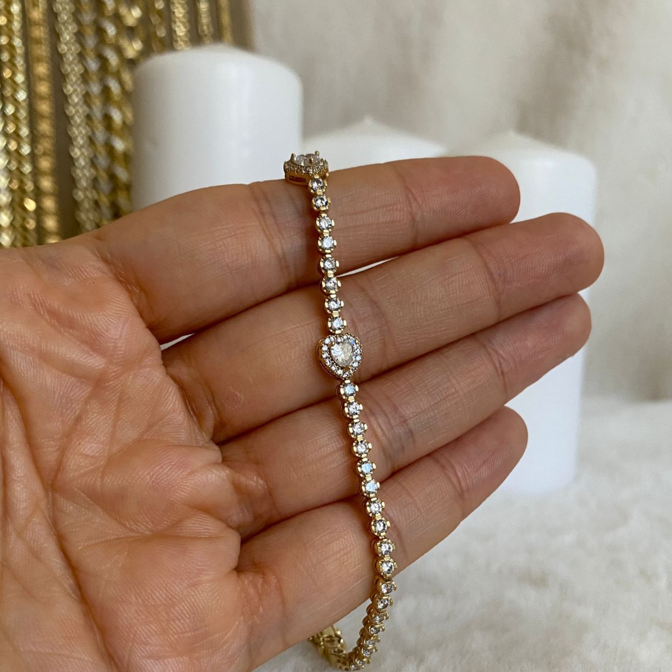 Xuping Gold Rengi Taşlı Üç Kalp Bileklik