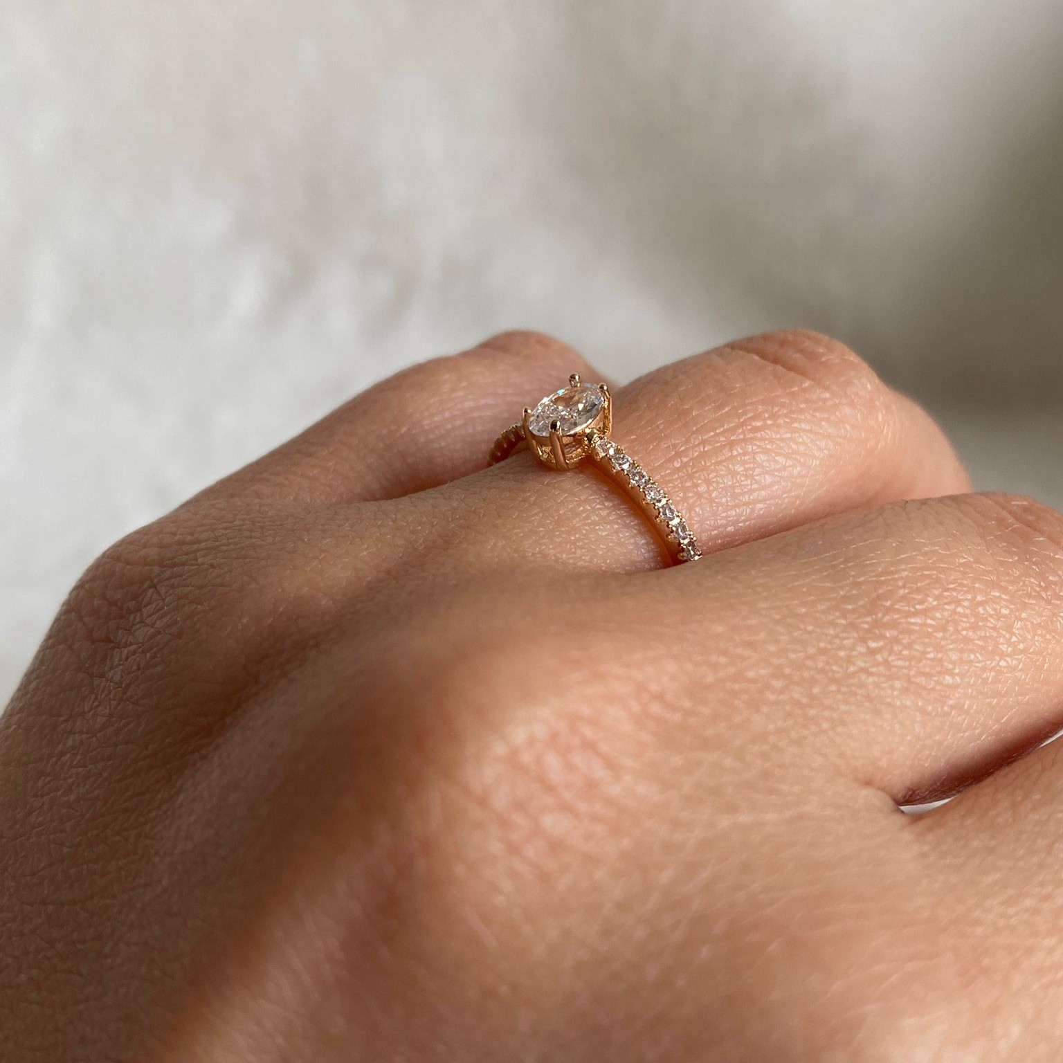 Xuping Rose Rengi Dikdörtgen Taşlı Yüzük
