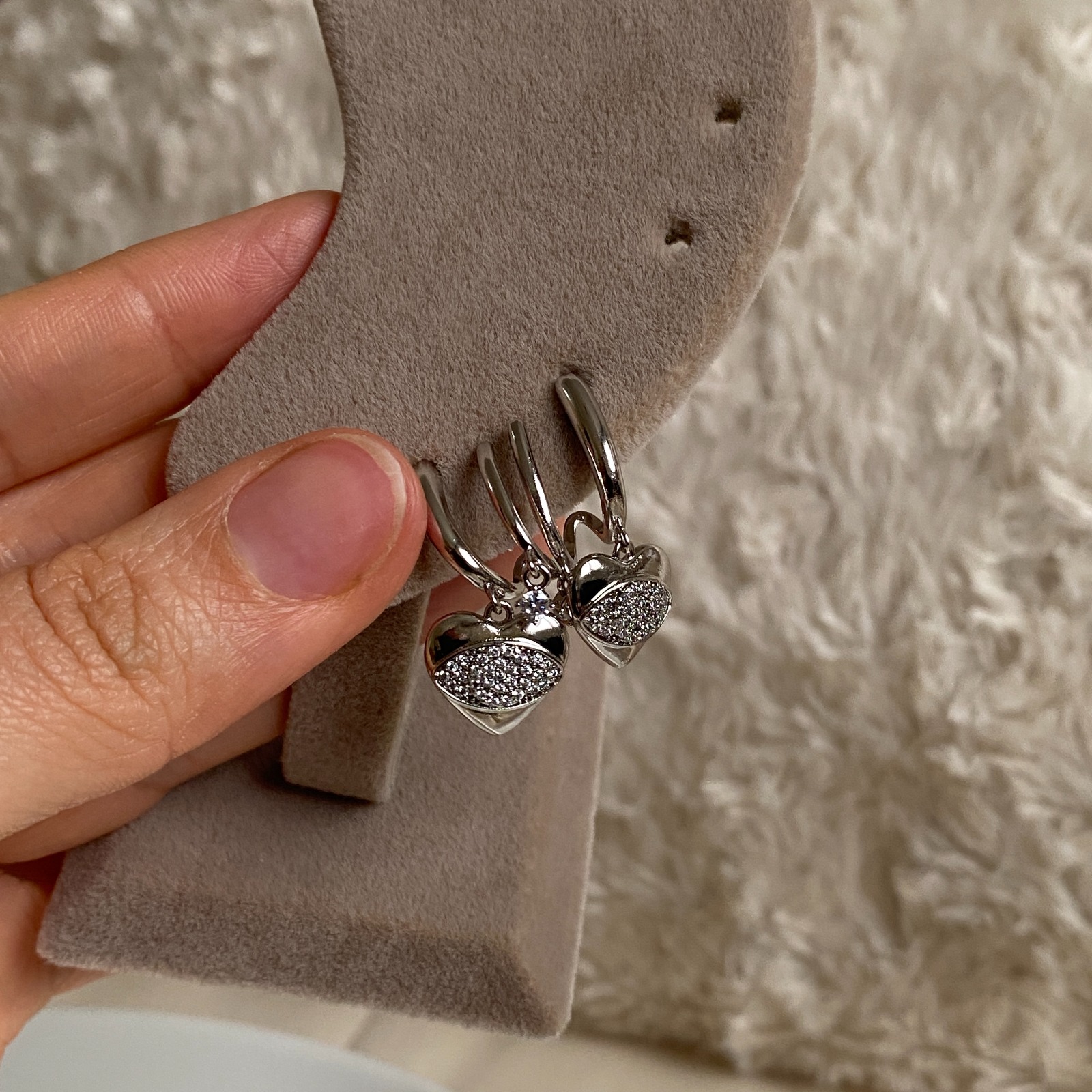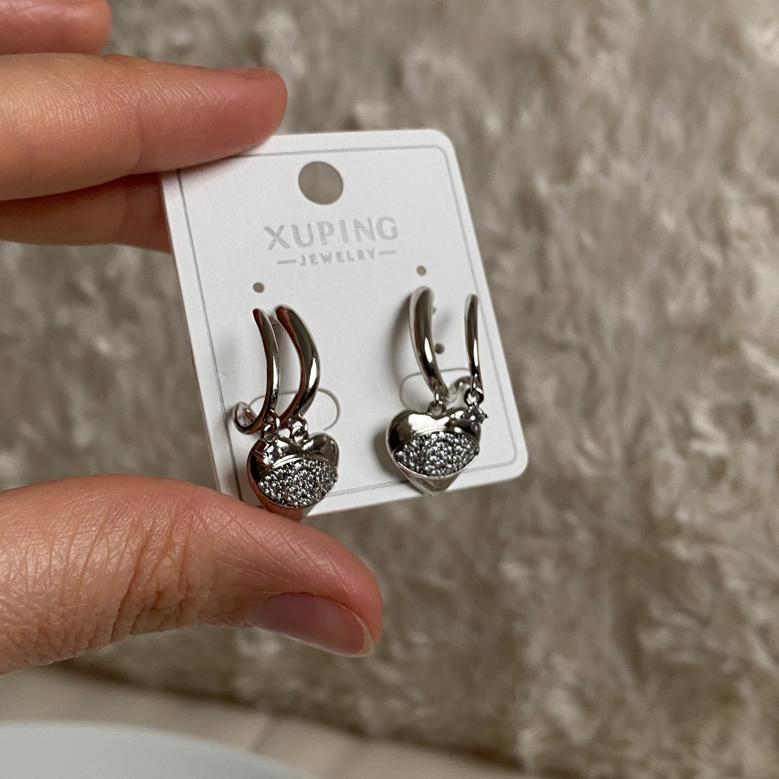 Xuping Silver Rengi Çift Halkalı Kalp Küpe